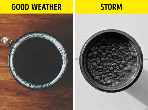 Muốn biết về cơn bão đang đến, hãy lắc bất kỳ đồ uống nào đó và rót vào ly. Nếu bong bóng trong đồ uống lan dần sang hai bên nghĩa là thời tiết tốt. Khi bong bỏng tập trung ở giữa cốc nghĩa là thời tiết xấu hoặc cơn bão đang đến.
