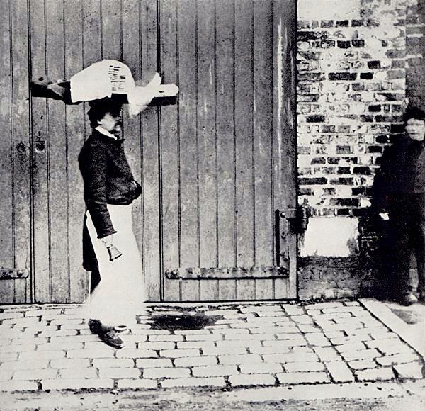 Cách thợ làm bánh ở London rao bán bánh ḿ ở thế kỷ 19 vẫn hoàn toàn thủ công: họ đội các khay bánh lớn trên đầu, đi dọc các phố cùng với chuông cầm tay để báo hiệu cho người mua.