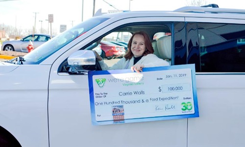 Carrie Walls, vợ của một viên chức liên bang ở hạt Lounoun, bang Virginia, Mỹ may mắn trúng giải độc đắc trong chương trình xổ số của bang, CNN đưa tin. Tấm vé của Carrie nằm trong số 554.000 vé xổ số được bán ra hôm 4/12/2018, hãng xổ số cho biết.