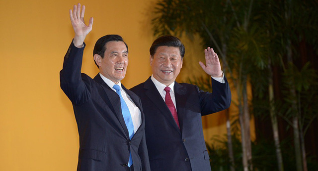 Cựu lănh đạo Đài Loan Mă Anh Cửu (trái) gặp Chủ tịch Trung Quốc Tập Cận B́nh tại khách sạn Shangri La ở Singapore năm 2015. (Ảnh: Sputnik)