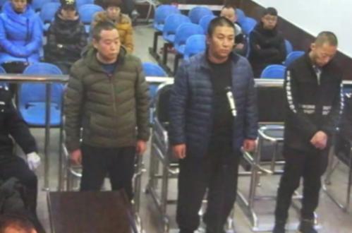 Từ trái sang phải: Liu Zhenhua, Wang You, và Zhang Wenhui trong phiên ṭa xét xử hồi tháng 12/2018 ở Cáp Nhĩ Tân. Ảnh: The paper.cn.