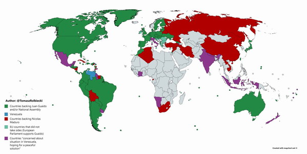 Bản đồ các nước ủng hộ Maduro và đối lập: