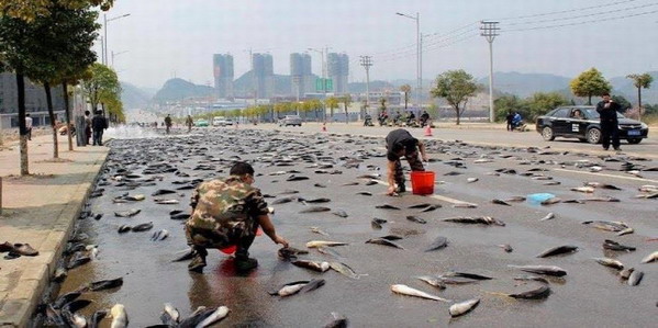Vietbf.com Sốc: Cá hàng đàn từ trên trời rơi xuống đất. Điều như chỉ trong tưởng tượng hài hước nhưng lại có thật trên thế giới này. Tai Honduras, một cơn bão ập tới, cùng với nước mưa hàng tấn cá rơi xuống đất.