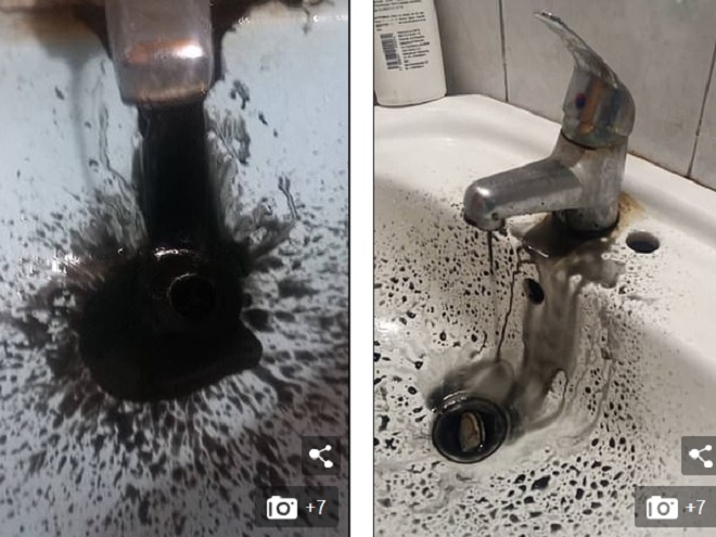 Theo Daily Mail, cư dân ở San Diego, bang Carabobo, đăng tải lên mạng xã hội video nước máy trong nhà biến thành màu đen.