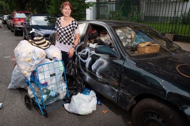 Bà cùng chiếc xe ô tô cũng và đống rác