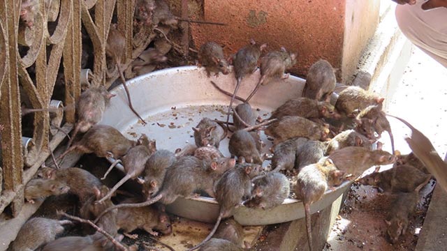 Có thể nói rằng ngôi đền này là thiên đường của chuột, thậm chí người ta tin rằng khi đến đây mà có chuột chạy qua chân thì sẽ nhận được nhiều may mắn. Tuy nhiên, khung cảnh chuột chạy từng đàn, bu đông đen quanh những thau thức ăn khiến ai cũng hãi hùng.