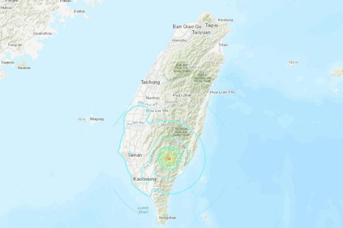Vị trí tâm chấn trận động đất ở huyện Đài Trung, Đài Loan hôm nay. Ảnh: USGS.