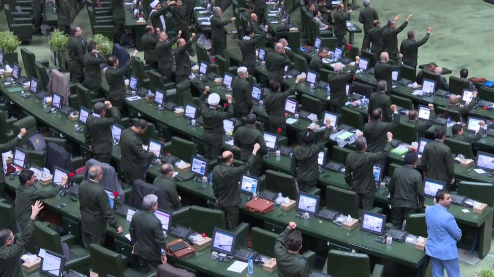Nghị sĩ Quốc hội Iran mặc đồng phục của IRGC tham gia phiên họp ngày 9/4. Ảnh: RT