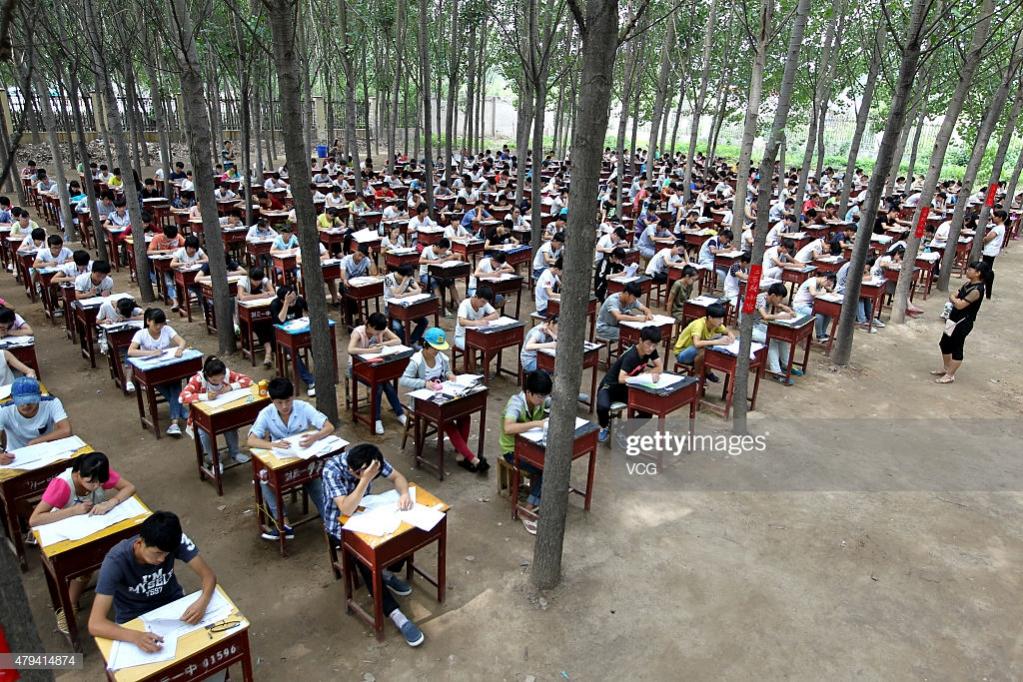 Để tránh gian lận, một số trường ở Trung Quốc đă cho tổ chức kiểm tra ngoài trời v́ họ cho rằng có thể đặt bàn ở khoảng cách xa hơn. Bên cạnh đó, không gian rộng bên ngoài có không khí trong lành, ánh sáng tự nhiên giúp cho học sinh giảm bớt sự căng thẳng.