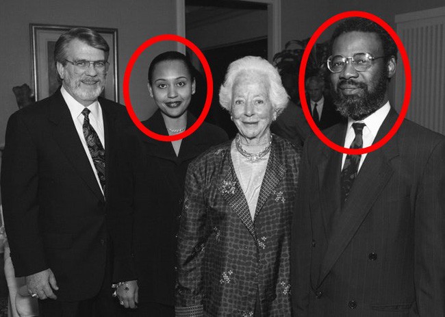 Cặp vợ chồng Mohamed Toure và Denise Cros-Toure chụp ảnh cùng một số nhà hảo tâm.