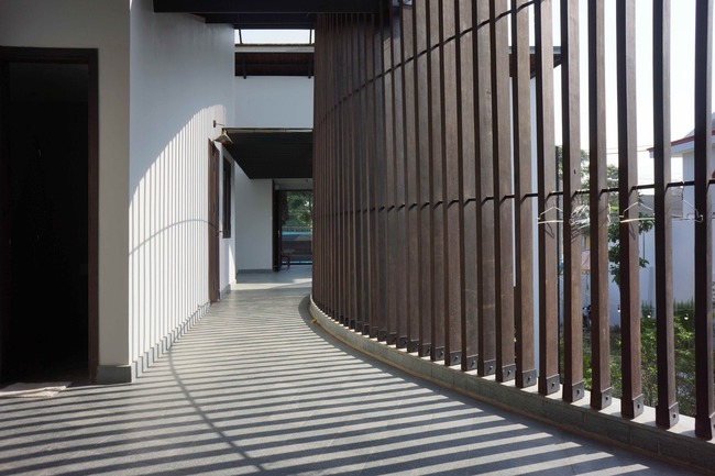 Thiết kế gỗ dọc hành lang mang lại cảm giác truyền thống, cổ kính