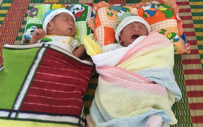 Người phụ nữ mang thai đang phụ hồ th́ đau đẻ. Một ḿnh tự vào viện, tiền không có, quần áo cho con không. May mắn 2 đứa trẻ chào đời b́nh an, một bé trai và một bé gái.