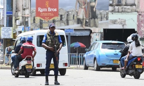 Cảnh sát Sri Lanka tuần tra trên đường phố. Ảnh: AFP.