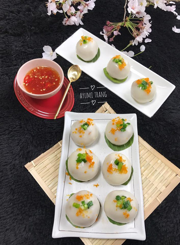 Trình bày: Bánh ít trần ra dĩa lót lá chuối, rắc mỡ hành và rắc tôm chấy lên trên. Ăn cùng nước mắm chua ngọt .