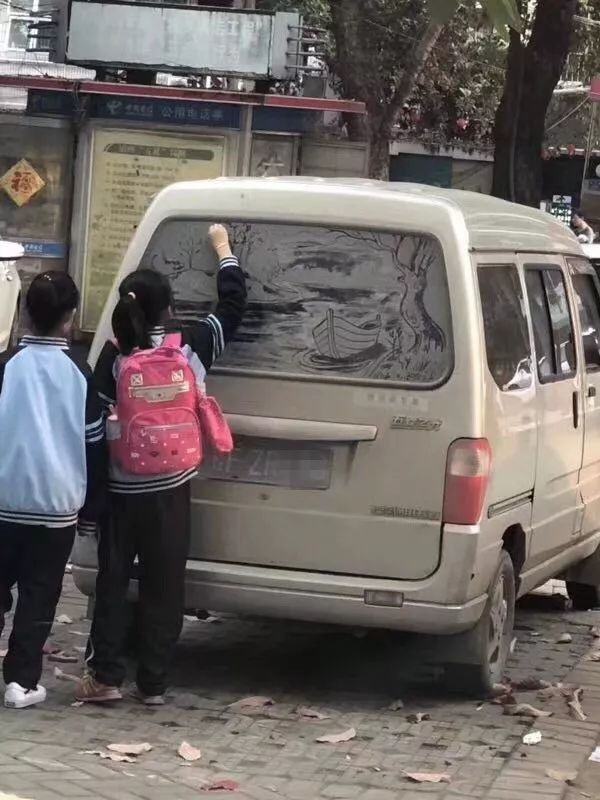 Trên mạng Weibo gần đây đã chia sẻ hình ảnh thú vị về hình ảnh của một bé gái tiểu học đeo ba lô màu hồng đang vẽ bức tranh sơn thủy lên kính sau của chiếc xe hơi bám đầy bụi gây sốt, sau khi vừa nhìn thấy hình ảnh này, nhiều người đã trầm trồ trước sự tài năng tuyệt vời của đứa trẻ. Tuy nhiên, hóa ra chủ nhân thật sự không phải đứa trẻ này.