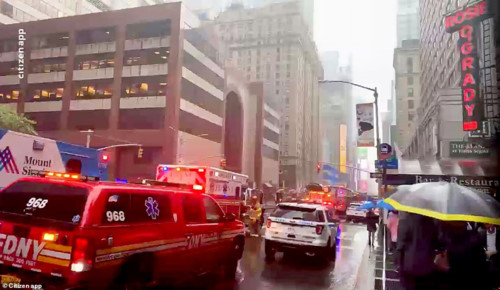Vụ tai nạn xảy ra trước 2 giờ chiều vào một ngày mưa và sương mù tại Trung tâm AXA Equitable 50 tầng tại 787 Đại lộ Seventh. Hàng chục phương tiện cấp cứu đã có mặt tại khu vực chỉ cách Quảng trường Thời đại vài dãy nhà.