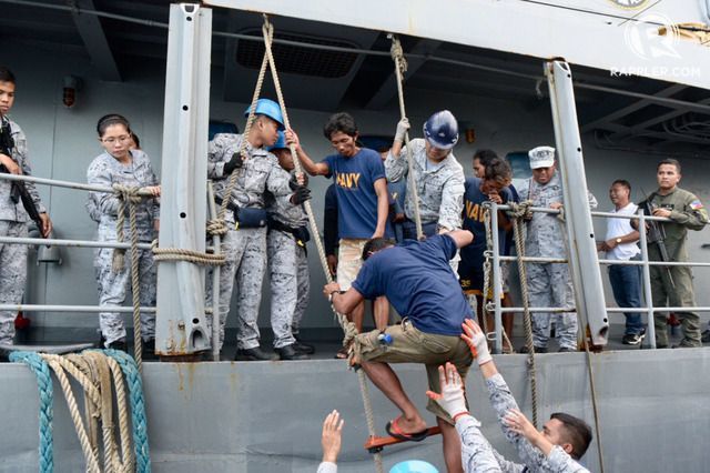 Các ngư dân trên tàu cá Philippines gặp nạn tại bãi Cỏ Rong được đưa về nhà ngày 14/6 (Ảnh: Rappler)