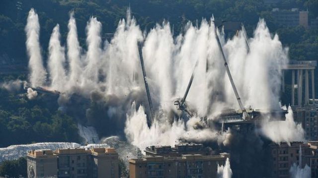 Sau khi gần 1 năm vụ sập cầu kinh hoàng xảy ra đã làm cho 43 người thiệt mạng, khiến các chuyên gia đã cho nổ tung phần còn lại của cây cầu cao tốc Morandi tại thành phố Genoa (Italy) thành tro bụi trong chớp mắt.