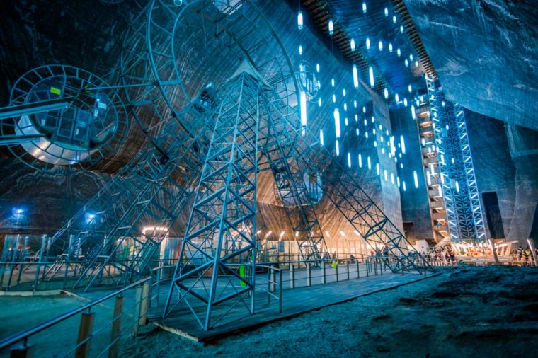 Bạn đã bao giờ muốn chơi một vòng đu quay dưới lòng đất chưa? Tất cả những gì bạn phải làm là chui vào một mỏ muối cũ năm sâu 122 m dưới lòng đất ở Salina, Romania. Ở đó, bạn cũng sẽ tìm thấy một vòng đu quay lớn, một sân chơi bowling, sân bóng bàn và sân golf thu nhỏ. Mỏ này đã có thời kỳ từng là nơi trú ẩn bom trong đại chiến thế giới lần II, và sau đó là một trung tâm lưu trữ phô mai. Nó đã được chuyển đổi thành một điểm thu hút khách du lịch từ những năm 1990.