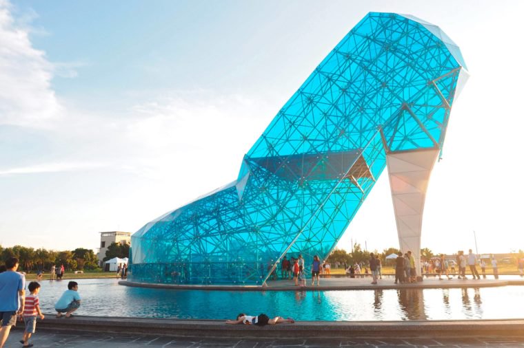Nếu một cô bé Lọ Lem khổng lồ đang đi tìm chiếc giầy thủy tinh, cô ấy sẽ tìm thấy nó ở Quận Chiaya của Đài Loan. Ở đó, một đôi giày cao tới hơn 16 m được làm bằng kính cường lực màu xanh đã được xây dựng vào năm 2016 như một nhà thờ. Đôi giầy quá khổ này là một địa điểm tổ chức đám cưới phổ biến ở Đài Loan.