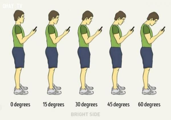 Hầu hết chúng ta đều cúi xuống vô thứckhi sử dụng điện thoại thông minh hay laptop. Hãy cố gắng để điện thoại ngay trước mắt và đặt laptop ở vị trí tương đương với vị trí bàn làm việc bạn vẫn ngồi.
