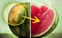 Quả dưa hấu có phần đáy (phần đối diện với cuống) tiếp xúc nhiều với mặt đất sẽ có nhiều vết rám. Các đốm vàng hay màu vàng cam ở phần đáy dưa mách bạn, đó là một quả dưa ngon.