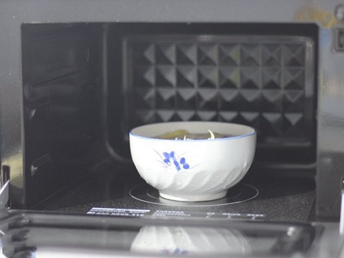 - Bước 4: Đặt đĩa sườn vào lò vi sóng và bật chế độ lửa cao trong khoảng 3 phút là được. Lấy đĩa sườn ra cho hành lá thái nhỏ vào là xong.