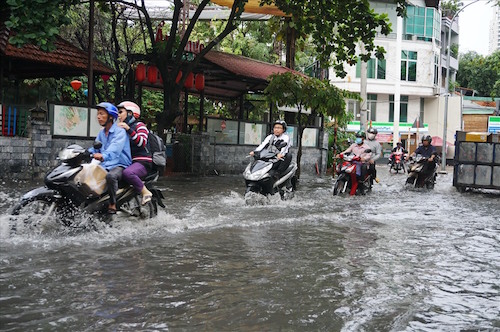 Cứ mỗi trận mưa xuống, khu nhà giàu Thảo Điền lại chìm sâu trong nước. Ảnh: M.Q