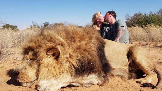Một cặp vợ chồng người Canada chụp ảnh hôn nhau đắm đuối bên xác của một con sư tử mà họ bắn chết khi đi săn ở châu Phi đã gây phẫn nộ.