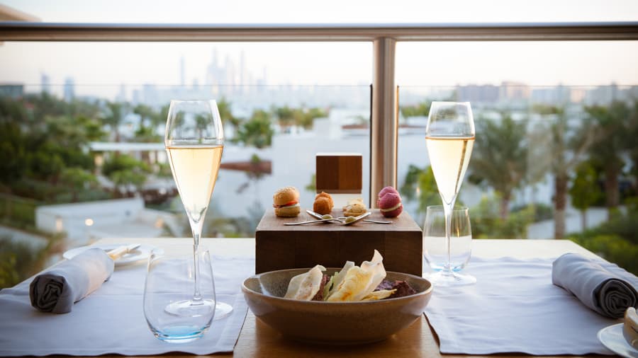 Thật khó để bỏ lỡ Burj Khalifa, tòa tháp cao nhất thế giới, trong bất kỳ chuyến thăm Dubai nào. Trong khi hầu hết mọi người hướng lên đỉnh tháp để ngắm cảnh Dubai tuyệt vời thì một lựa chọn sang trọng hơn là đặt bữa tối tại At.mosphere. Nhà hàng ăn ngon này siêu ngon và siêu đắt đỏ. Các bàn đều được xếp cạnh cửa sổ kính suốt từ trần đến sàn mang đến cảnh hoàng hôn trong khi thực đơn với rất nhiều món ăn xa hoa như thịt bò Wagyu Úc, tôm hùm… tất cả được cung cấp cùng với các cặp rượu vang hoàn hảo nhất.