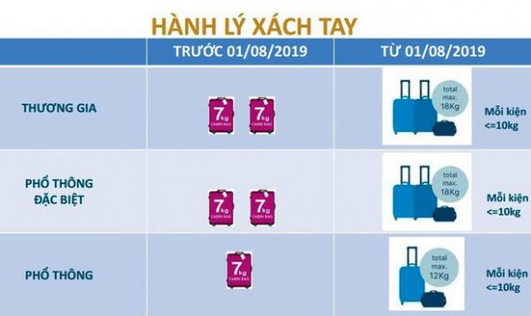 * Hành lư x_á_ch tay: Được mang 1 kiện hành lư x_á_ch tay gồm phụ kiện có tổng trọng lượng tối đa 12kg (trước đây là 1 kiện 7kg).