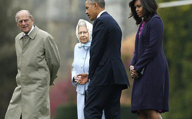Vợ chồng Tổng thống Barack và Michelle Obama trong một lần gặp gỡ với Nữ hoàng Anh Elizabeth II và Hoàng thân Phillip tại Lâu đài Windsor, Anh tháng 4/2016 (ảnh: AFP)