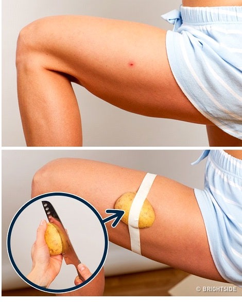 Một lát khoai tây rửa sạch có thể giảm sự sưng tấy. Đặt bề mặt cắt lên vết côn trùng đốt hay vết thương nhỏ và cố định lại bằng băng dính y tế, điều này có thể đẩy nhanh quá trình tái tạo và ngừa sưng