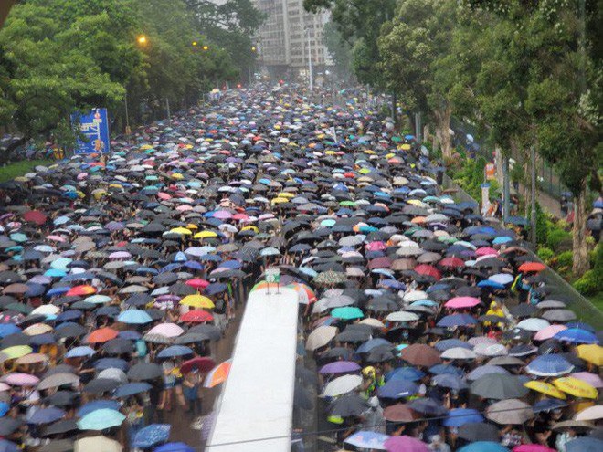Phóng viên báo South China Morning Post (SCMP) ghi nhận đường Hennessy đã biến thành "biển ô" sau khi hàng ngàn người biểu tình tập trung tại đây. Trong khi nhiều người đã rời khỏi công viên Victoria theo hướng Wan Chai, một đám đông khổng lồ tiếp tục tiến về công viên theo hướng ngược lại.
