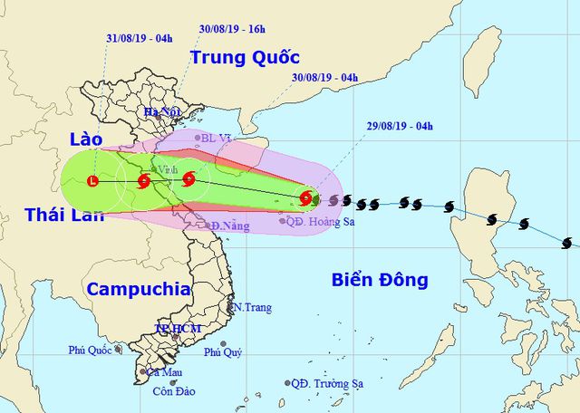 Theo Trung tâm Dự báo khí tượng thủy văn Quốc gia, hồi 4h ngày 29/8, vị trí tâm bão ở vào khoảng 17,3 độ Vĩ Bắc; 112,8 độ Kinh Đông, trên khu vực phía Đông Bắc Quần đảo Hoàng Sa, cách đất liền các tỉnh Quảng Trị-Quảng Ngãi khoảng 480km, cách đất liền các tỉnh Nghệ An-Quảng Bình khoảng 680km về phía Đông. Sức gió mạnh nhất vùng gần tâm bão mạnh cấp 9 (75-90km/giờ), giật cấp 11. Bán kính gió mạnh cấp 6, giật cấp 8 trở lên khoảng 120km tính từ tâm bão.
