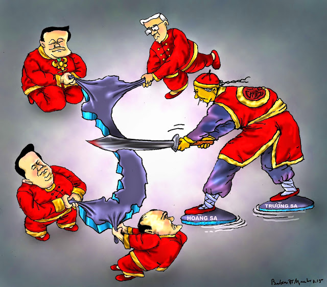 Trong khi đó, ‘mọi việc đã có đảng và nhà nước lo” vẫn kiên định chết giẫm ở đó. Thậm chí một cuộc biểu tình phản đối Trung Quốc của ‘quân đỏ’ - những người Việt thân chính quyền đang sinh sống ở Đức và phất cao cờ đỏ sao vàng - đã được vài tờ báo nhà nước đưa tin và hình ảnh nhưng lại bị Ban Tuyên giáo trung ương tuýt còi và lệnh gỡ bài ngay sau đó, cho thấy căn bệnh sợ hãi ‘thiên triều’ đã ăn quá sâu vào não trạng giới quan lại cầm quyền Việt Nam và khiến tê liệt phần lớn, nếu không nói là toàn diện hệ thống dân sự và cả quân sự của chế độ này.
