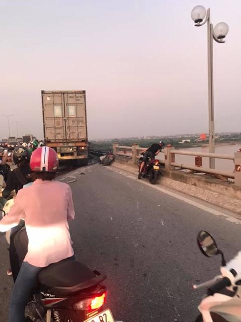 Một tai nạn kinh hoàng xảy ra tại cầu Thanh trì, Hà Nội. Xe container đâm nhiều xe máy, hất người người điều khiển xe máy xuống sông.