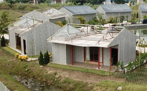 Một trong 3 khu nhà xây trái phép trên đất quy hoạch trồng cây xanh. Ảnh: Giang Chinh.
