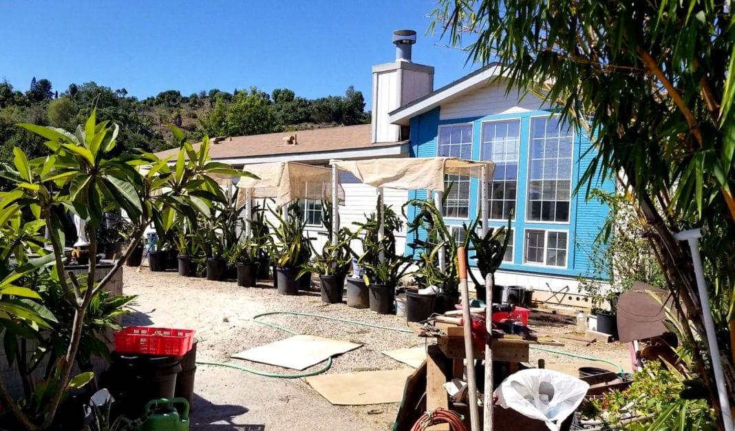 Lăo nông 82 tuổi, ông Nguyễn Ngọc Ổn, bên cạnh vườn ươm thanh long trên chậu, tiết kiệm 2/3 nước tưới tiêu, mang tên “Keep America Green” tại thành phố Vista, San Diego County, Nam California.