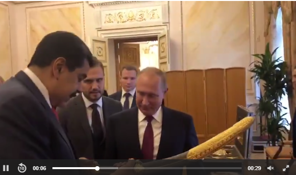 Tổng thống Venezuela tặng gươm quý cho Tổng thống Putin. Đây qua là món quà đặc biệt sau một "ngày làm việc phi thường" của Tổng thống Nga Vladimir Putin và Tổng thống Venezuela Nicolas Maduro.