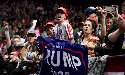 Những người ủng hộ Trump tại cuộc vận động ở thành phố Grand Rapids, bang Michigan, Mỹ hôm 28/3. Ảnh: Reuters.