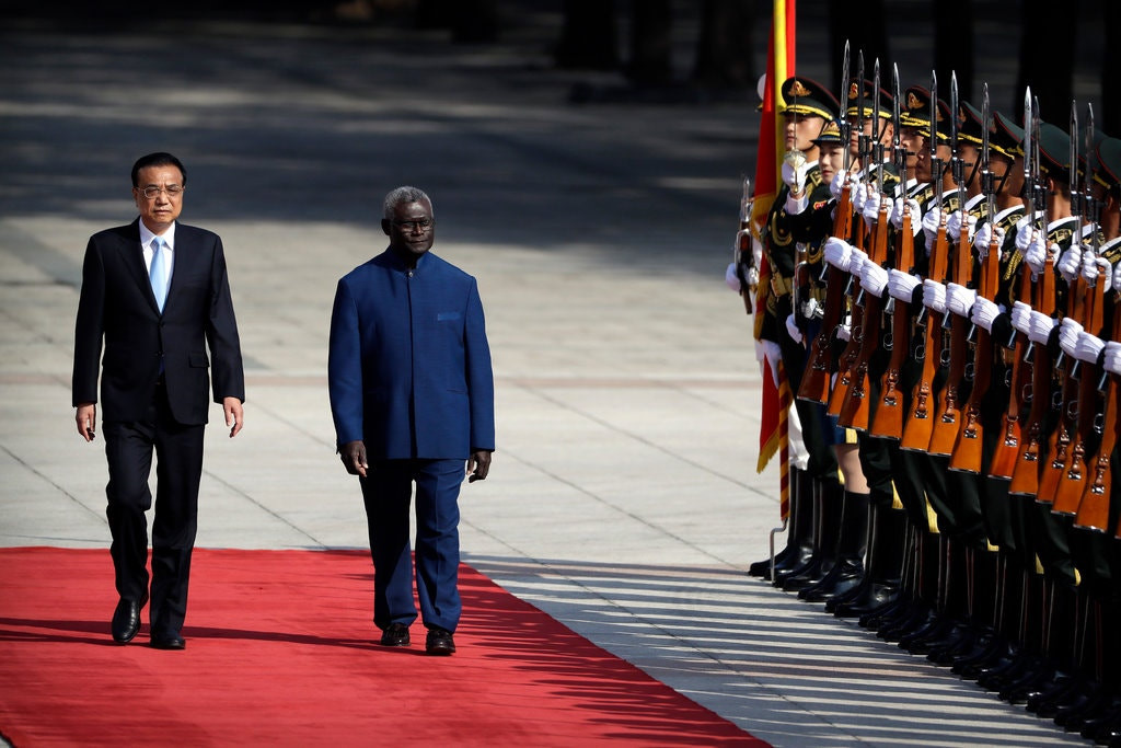 Thủ tướng Manasseh Sogavare của Solomon và Thủ tướng Trung Quốc Lư Khắc Cường tại Bắc Kinh đầu tháng 10. Ảnh: AP.