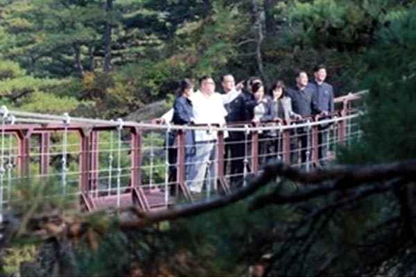 Bà Ri xuất hiện cạnh chồng trong các bức ảnh chụp chuyến đi thị sát khu nghỉ dưỡng núi Kim Cương do KCNA công bố ngày 23/10.