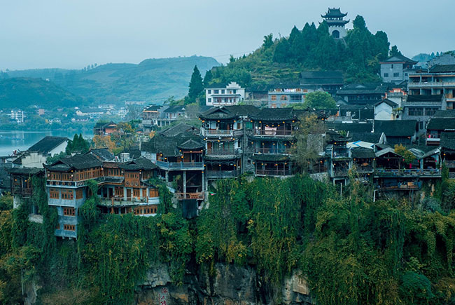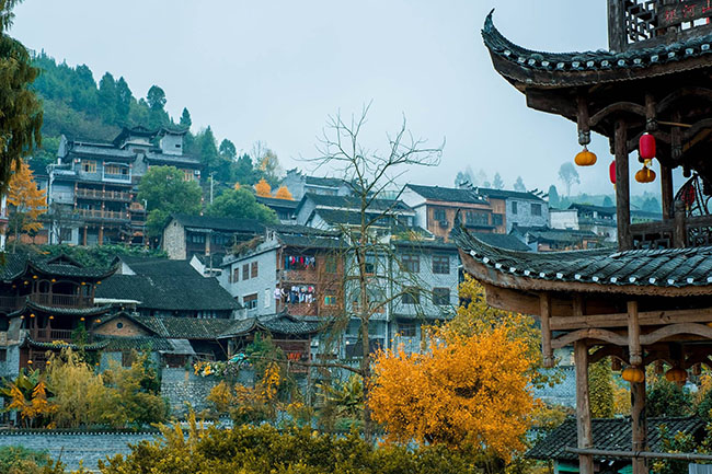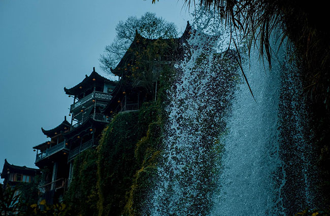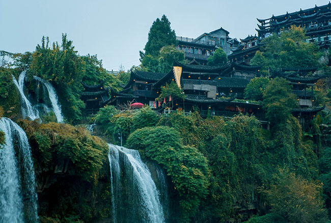Phù Dung Trấn còn được biết đến với tên gọi “cổ trấn ngàn năm trên thác nước” bởi có dòng thác hùng vĩ chảy qua.