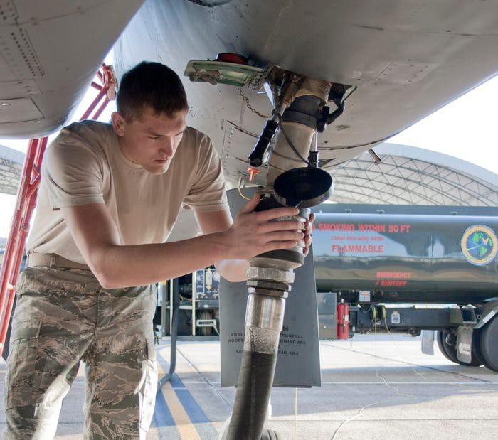 Đây là một gánh nặng rất lớn đối với hệ thống hậu cần của quân đội Mỹ. Dù rằng Mỹ hoàn toàn có thể mua nhiên liệu ở ngay tại các quốc gia có lực lượng này đang đóng quân, tuy nhiên việc tự chủ được nhiên liệu luôn là yêu cầu cao nhất với đội quân này. Nguồn ảnh: USAF.