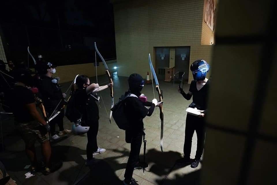 Các bạn trẻ Hong Kong không chịu khuất phục trước ĐCSTQ. Họ cùng nhau thử nghiệm các loại vũ khí đơn giản nhất nhưng cũng rất thông minh. Cung tên và máy bắn bom xăng đang được các bạn trẻ thử nghiệm.