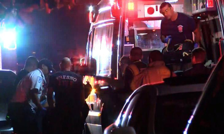 Cảnh sát và nhân viên cứu hộ tại hiện trường vụ xả súng ở thành phố Fresno, bang California tối 17/11. Ảnh: CNN.