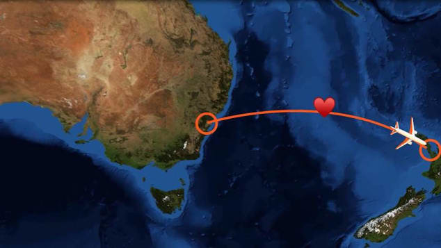 Một đôi tân nhân hạnh phúc đã trao lời thề nguyện giữa tiếng vỗ tay rợp trời của các hành khách đi cùng trên chuyến bay từ Australia đến New Zealand, khi máy bay lên đến độ cao hơn 11.000 m, chạm đúng điểm chính giữa hai quốc gia, họ đã nguyện ước kết duyên vợ chồng.