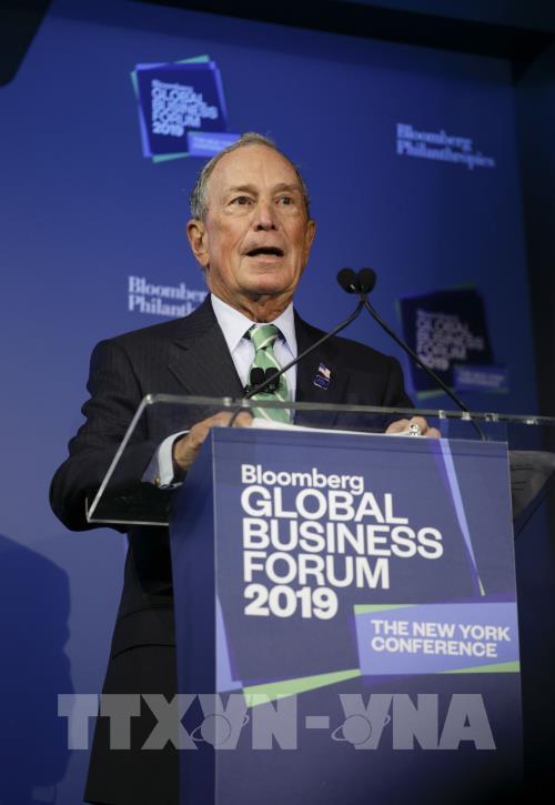 Cựu Thị trưởng thành phố New York Michael Bloomberg phát biểu tại diễn đàn doanh nghiệp toàn cầu ở New York, Mỹ, ngày 25/9/2019. Ảnh: AFP/TTXVN