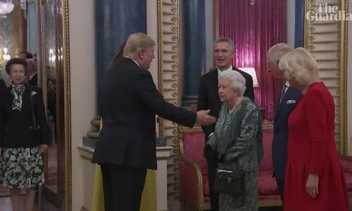 Đoạn video được quay tại Cung điện Buckingham trong lễ tiếp đón các lãnh đạo Tổ chức Hiệp ước Bắc Đại Tây Dương (NATO) hôm 3/12 cho thấy Tổng thống Mỹ Donald Trump và Đệ nhất phu nhân Melania bắt tay, trò chuyện với Nữ hoàng Elizabeth, Thái tử Charles và Nữ Công tước xứ Cornwall Camilla và Tổng thư ký NATO Jens Stoltenberg. Công chúa Anne, con gái Nữ hoàng, mặc váy hoa và áo khoác đen đứng cùng đội ngũ đón tiếp ở cánh cửa ngay gần đó.